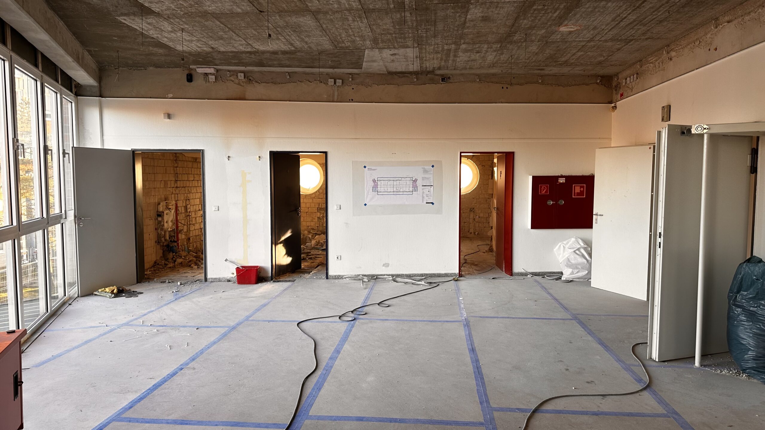 Nachdem um den Jahreswechsel 2024/25 herum im ehemaligen „Haus der Wirtschaft“ bereits kaum merkbare Vorbereitungsarbeiten zur „Entrümpelung“ des Gebäudes stattfanden, folgte in der ersten Februarwoche 2025 ein weiterer Schritt in Richtung Campus. Entlang der Lindenallee wurde eine Fläche von Bäumen und Sträuchern befreit, die lt. Planung zur Erstellung einer Ausweichparkfläche während der Bauarbeiten dienen soll. Später soll dieser Parkraum für die Nutzer*innen der künftigen Sporthalle zur Verfügung stehen. Zudem wurden auf dem Schulgelände der Lübecker Allee Gehölze entfernt, die den beginnenden Baumaßnahmen später weichen müssen.